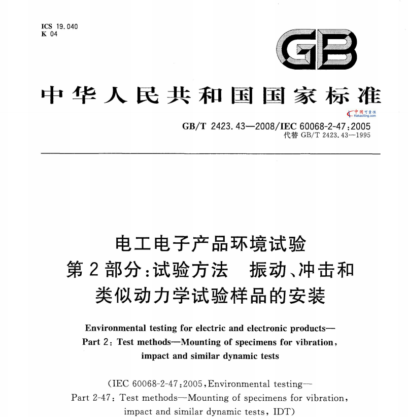 GB-T2423.43-2008试验方法_振动、冲击和类似动力学试验样品的安装.pdf
